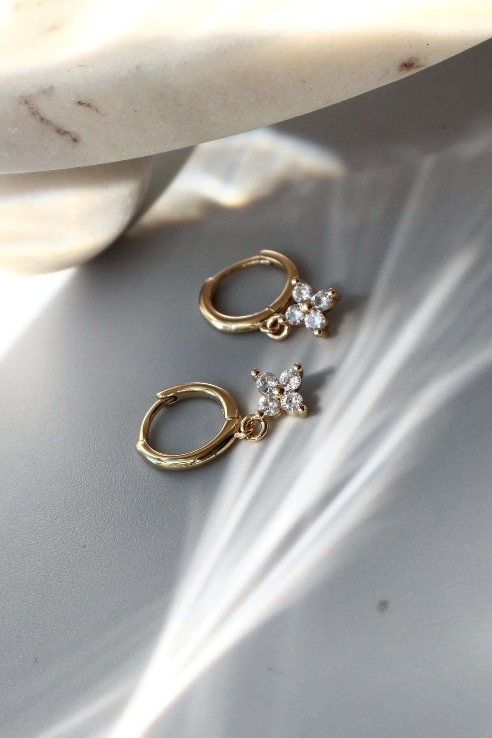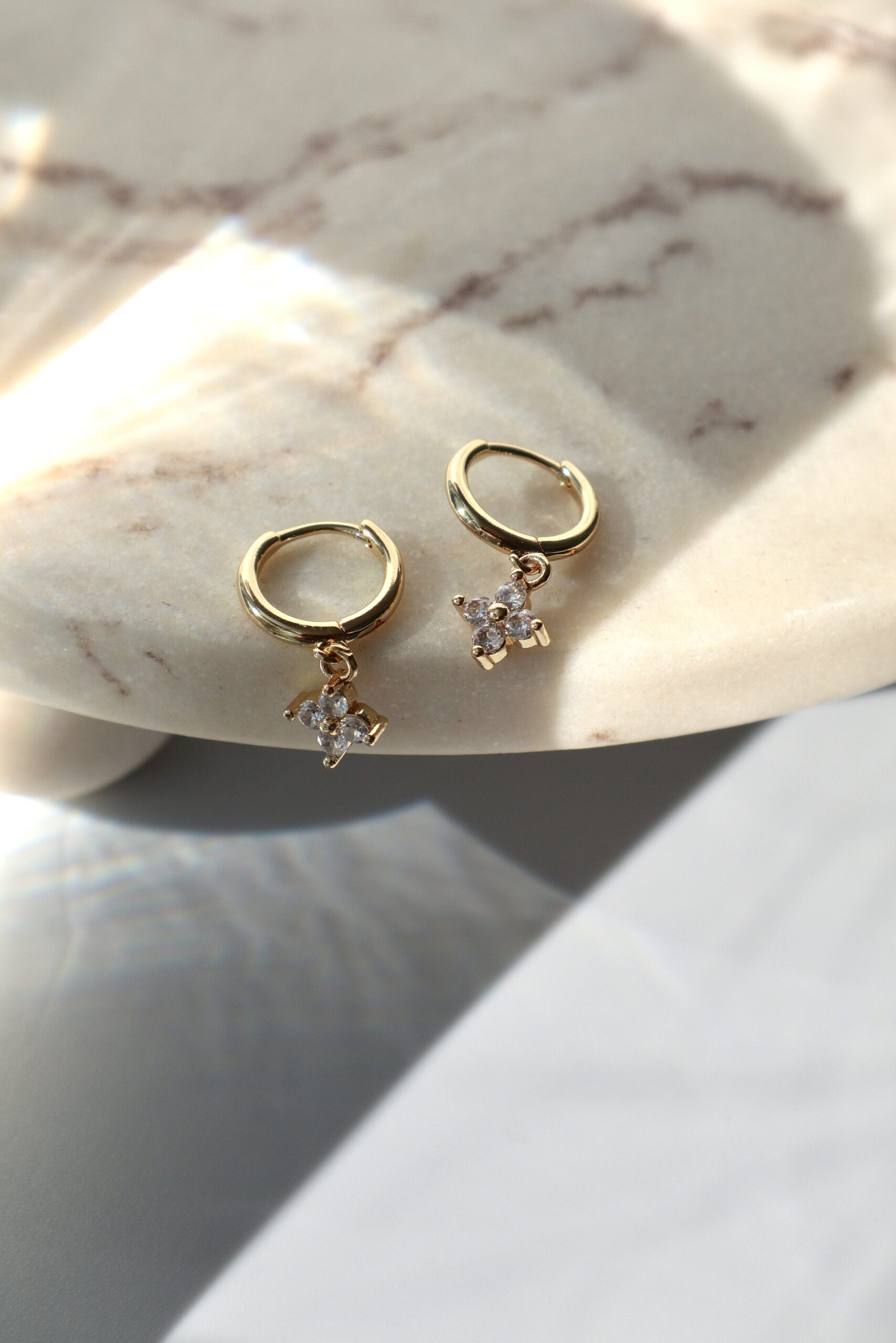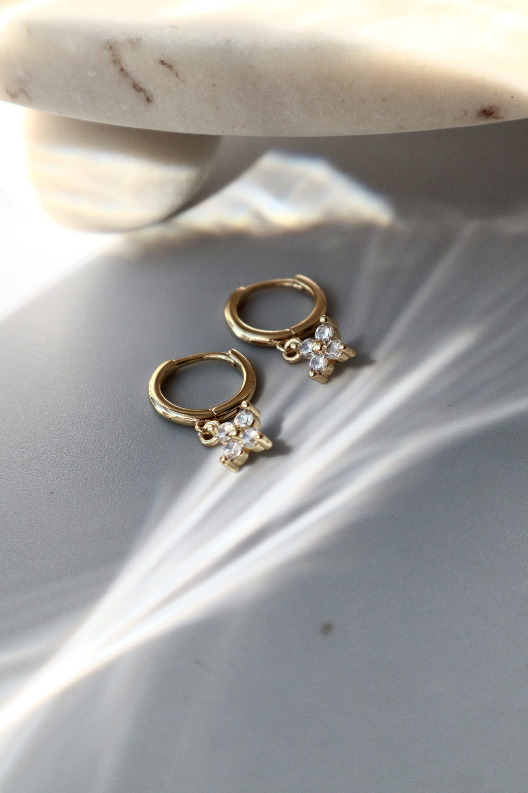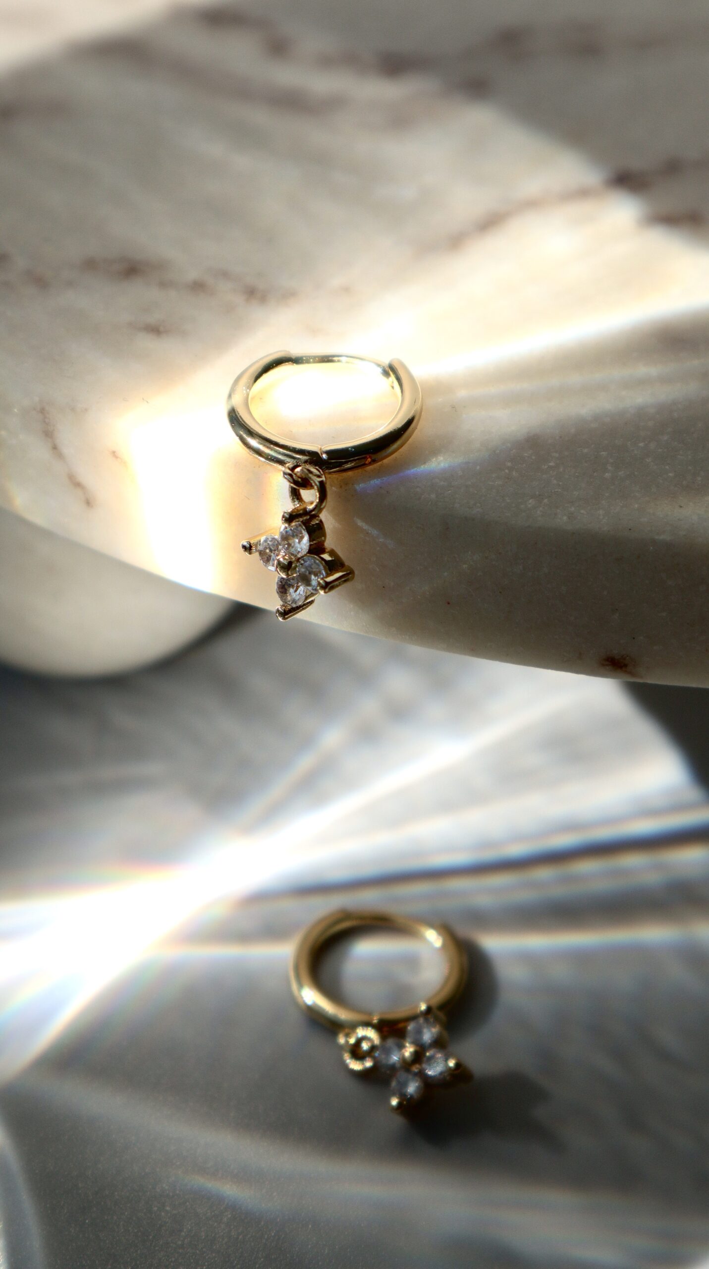The Uni Hoops feature a delicate flower design in stainless steel with sparkling zircon accents non-tarnish, hypoallergenic, and perfect for effortless everyday elegance.”